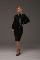 Элегантное платье прилегающего силуэта из плотного трикотажа. Рукав втачной длиной 7/8. Фигурный вырез горловины. Отрезное по линии талии, застежка на потайную молнию в среднем шве спинки. Разрез по спинке. Без подкладки.