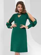Платье приталенного силуэта с подрезом по линии талии.Спинка со средним швом и рельефами. В среднем шве спинки застежка на тесьму-молнию и шлица.Перед с фигурными рельефами.Горловина сложной художественной формы.Рукав втачной двухшовный 3/4, с разрезом в локтевом шве.В талиевый шов вставлена отлетная баска с декоративными складками.Лиф платья выполнен на подкладке.На переде имеется декоративная брошь.Также имеется декоративный навесной пояс.