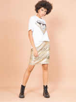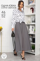 Юбка прямая, зауженная к низу, на притачном поясе, застежка на тесьму-молнию в среднем шве, который переходит в шлицу. На подкладке.