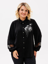 Vilatte Блузка с короткими рукавами из плотного струящегося сатина D29.280 черны