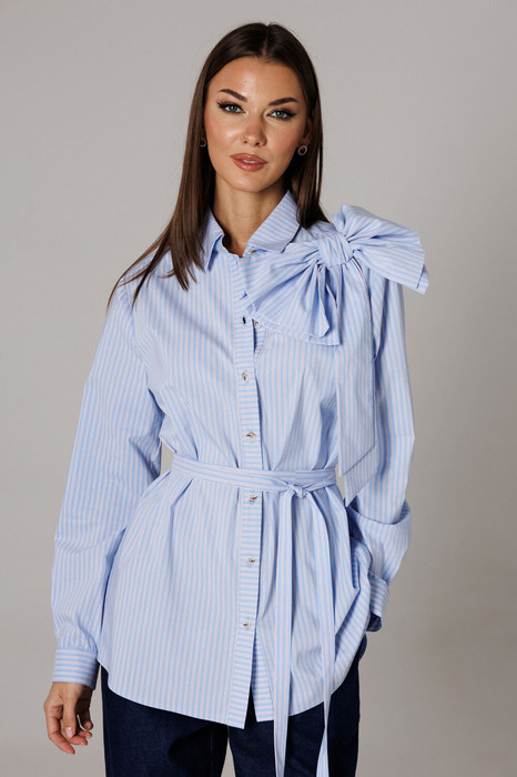 Блуза рубашечного покроя с втачным одношовным рукавом с манжетой.