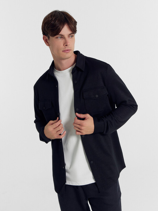 Центральная застежка на кнопки. На деталях переда накладные карманы с клапанами, с