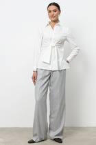 Рубашка прямого силуэта с фигурным низом. Выполнена застежка на петли и пуговицы. По горловине стояче-отложной воротник с отрезной стойкой. По спинке кокетка и склада на свободу движения. Рукав рубашечного кроя.Перед рубашки декорирован дизайнерской вышивкой.