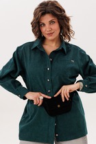 Рубашка прямого силуэта с фигурным низом. Выполнена застежка на петли и пуговицы. По горловине стояче-отложной воротник с отрезной стойкой. По спинке кокетка и склада на свободу движения. Рукав рубашечного кроя.Перед рубашки декорирован дизайнерской вышивкой.