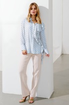 Хлопковая оверсайз рубашка. Детали: рубашка прямого силуэта, спущенная линия плеча, застежка на петли и пуговицы, длинные рукава с притачными манжетами, фигурный низ.