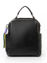 Рюкзак с 3-я отделениями. 2 отделения на молниях и цетральное отделение на магнитных кнопках.На передней стенке карман под клапаном на магнитной кнопке. Внутри- карман для телефона и карман на молнии. Высота ручки 6 см, наплечные ремни регулируются по длине.