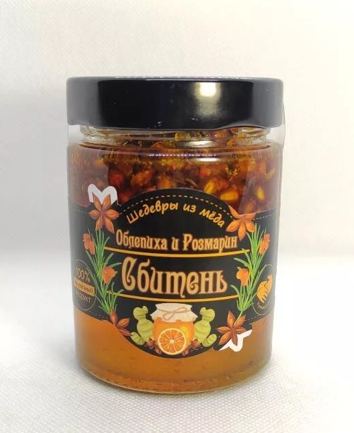 Состав: мед цветочный, сублимированная облепиха, сушеный розмарин, корица, гвоздика, кардамон, бадьян, черный перец.