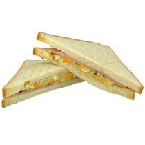 Состав: ветчина с индейкой, сыр творожный, соус «Огуречный релиш», соус майонезный, медово-горчичная заправка, паприка красная, приправа «Смесь перцев», хлеб тостовый.