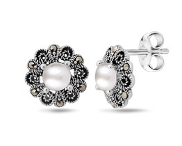 Серьги, марказит , перламутр, SL-LNJ339