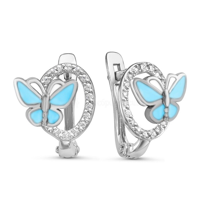 Совместные покупки Нижневартовск Детские аксессуары Украшения, бижутерия — Серьги детские из родированного серебра с эмалью и фианитами - Бабочки 925 пробы