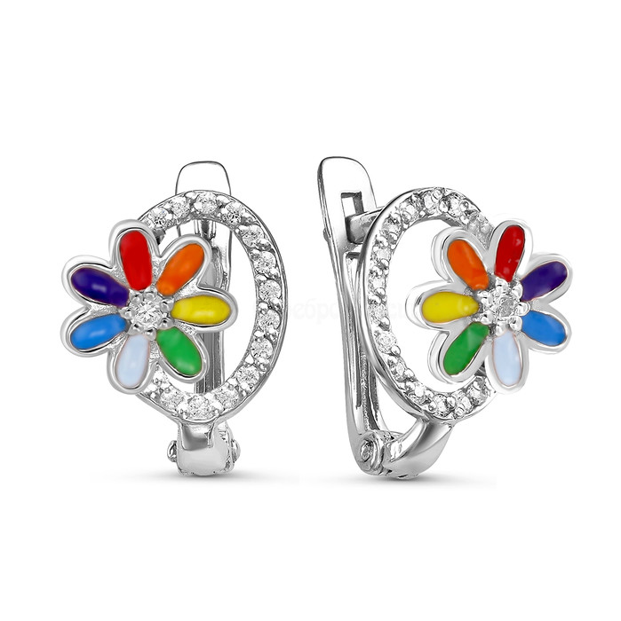 Серьги детские из родированного серебра с эмалью и фианитами - Семицветики 925 п