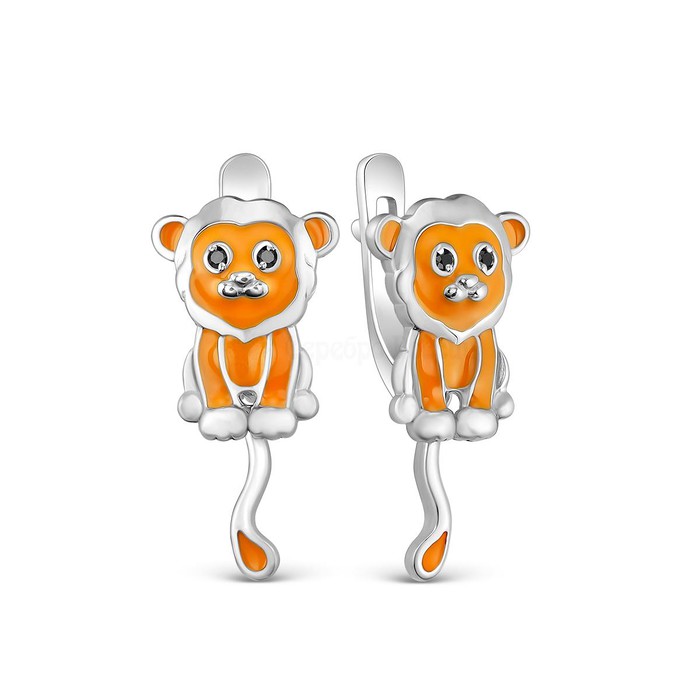 Серьги детские из серебра с эмалью и фианитами родированные - Львята