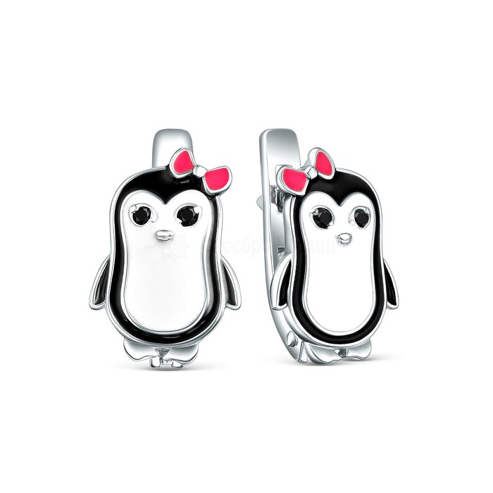 Совместные покупки Нижневартовск Детские аксессуары Украшения, бижутерия — Серьги детские из серебра с эмалью и фианитами родированные - Пингвины 925 пробы