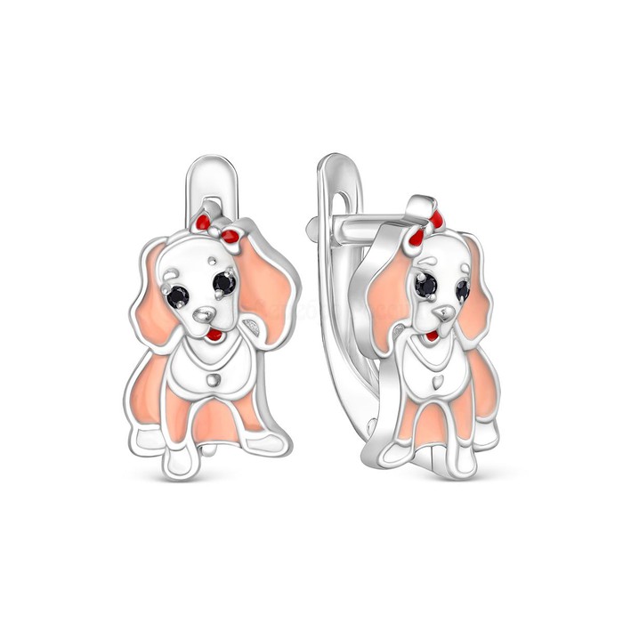 Совместные покупки Нижневартовск Детские аксессуары Украшения, бижутерия — Серьги детские из серебра с эмалью и фианитами родированные - Собачки