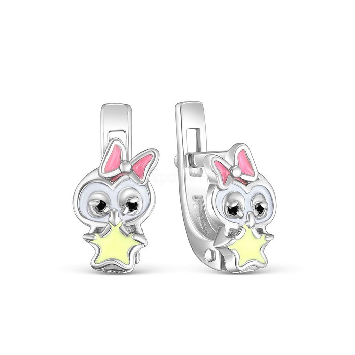 Совместные покупки Нижневартовск Детские аксессуары Украшения, бижутерия — Серьги детские из серебра с эмалью и фианитами родированные - Совушки