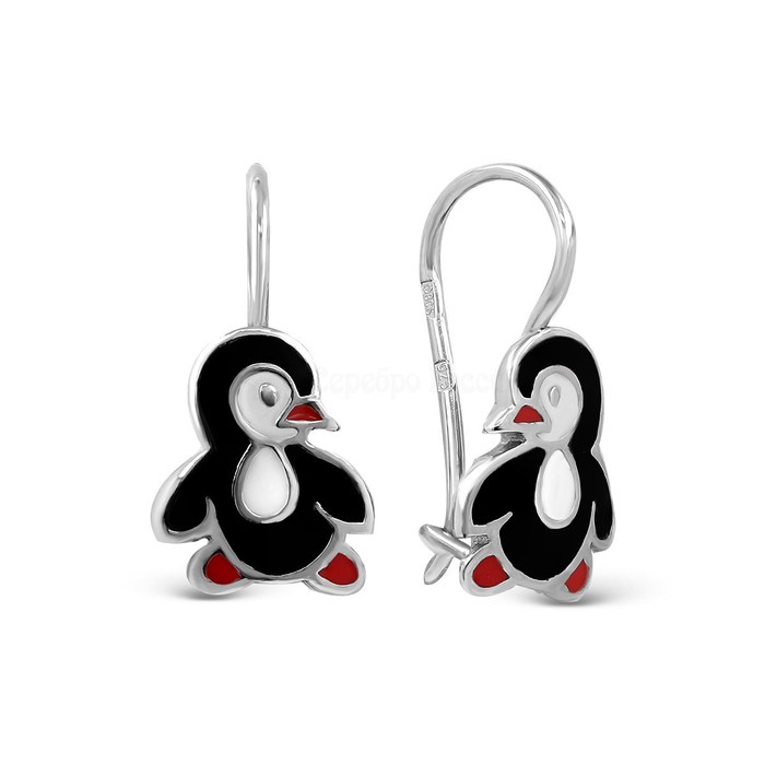 Совместные покупки Нижневартовск Детские аксессуары Украшения, бижутерия — Серьги детские из серебра с эмалью родированные - Пингвины 925 пробы 2110034