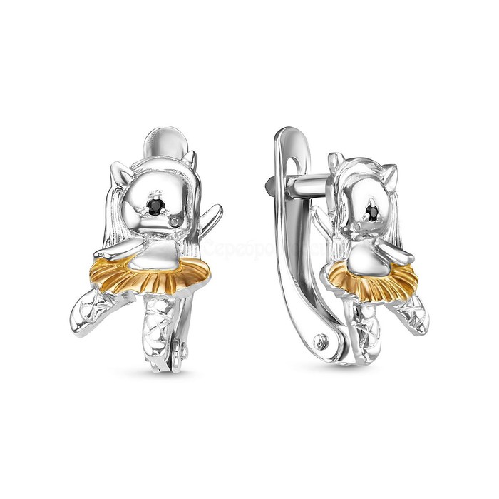 Серьги детские из серебра с позолотой родированные - Лошадки 925 пробы 5097рз
