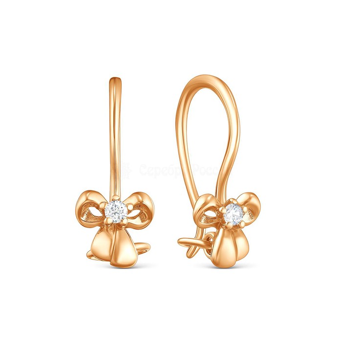 Серьги детские из золочёного серебра с фианитами - Бантик 925 пробы п8-285-1з200