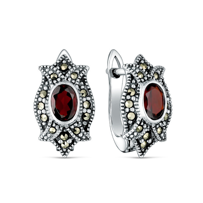 Совместные покупки Нижневартовск Ювелирные украшения и бижутерия Серьги — Серьги из чернёного серебра с натуральным гранатом и марказитами 925 пробы HE030