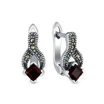 Серьги из чернёного серебра с натуральным гранатом и марказитами 925 пробы HE040