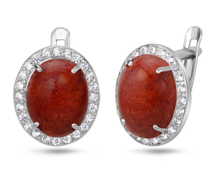 Серьги, арт.2043 Серебро Серебро 925, 5 гр., коралл губчатый