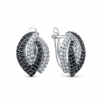 Серьги-пусеты из серебра с фианитами родированные (съемный элемент)