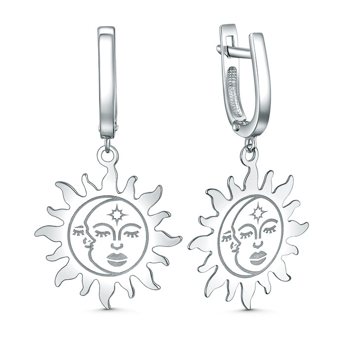 Совместные покупки Нижневартовск Ювелирные украшения и бижутерия Серьги — Серьги из серебра родированные - Солнце и луна 220-10-195-1р