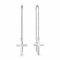 Серьги из серебра с натуральным сапфиром и кубическим цирконием родированные - С