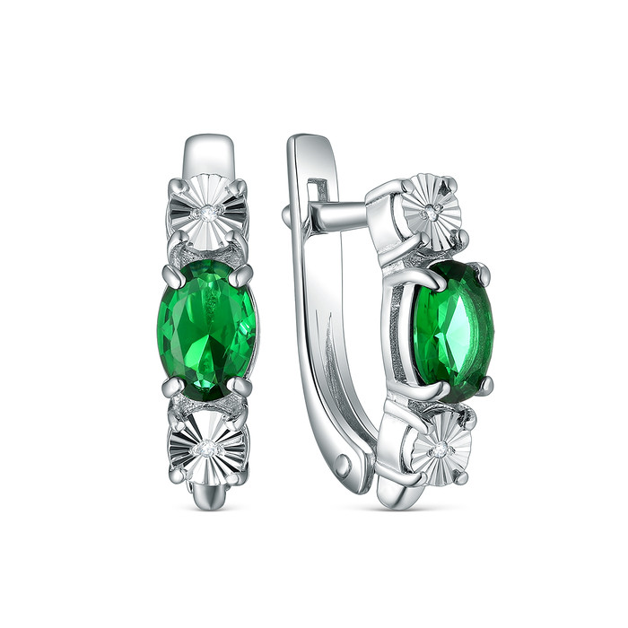 Серьги из серебра с бриллиантами и плавленым кварцем родированные 925 пробы 2-43