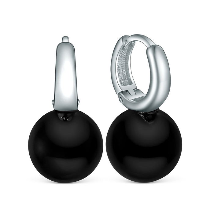 Серьги из серебра с чёрным агатом родированные 925 пробы 2340391856-20