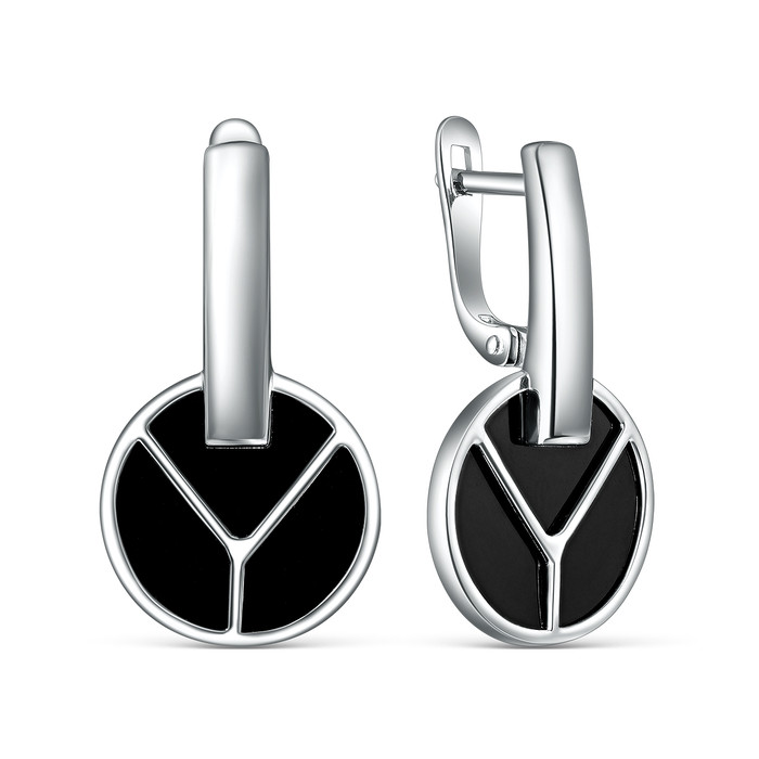 Совместные покупки Нижневартовск Ювелирные украшения и бижутерия Серьги — Серьги из серебра с чёрным агатом родированные С-4996-Р-Ча