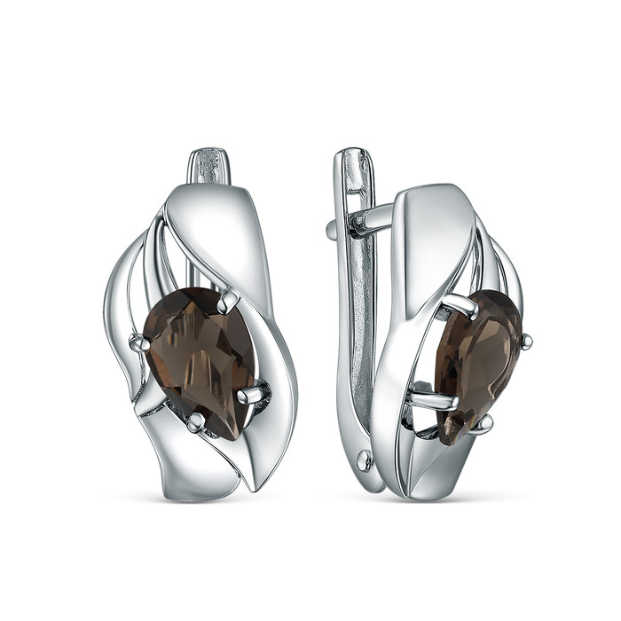Совместные покупки Нижневартовск Ювелирные украшения и бижутерия Серьги — Серьги из серебра с дымчатым кварцем родированные 1-5454-001