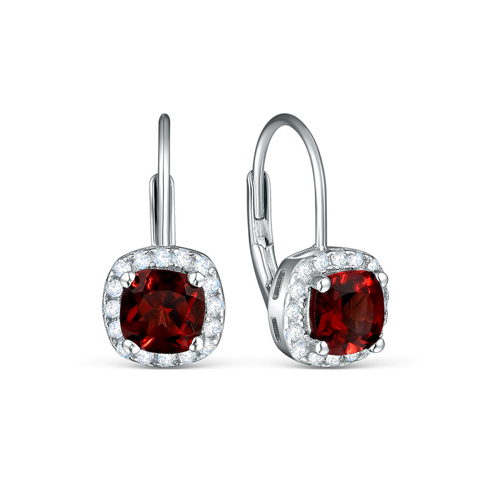 Совместные покупки Нижневартовск Ювелирные украшения и бижутерия Серьги — Серьги из серебра с гранатом и кубическим цирконием родированные 925 пробы GTE-2