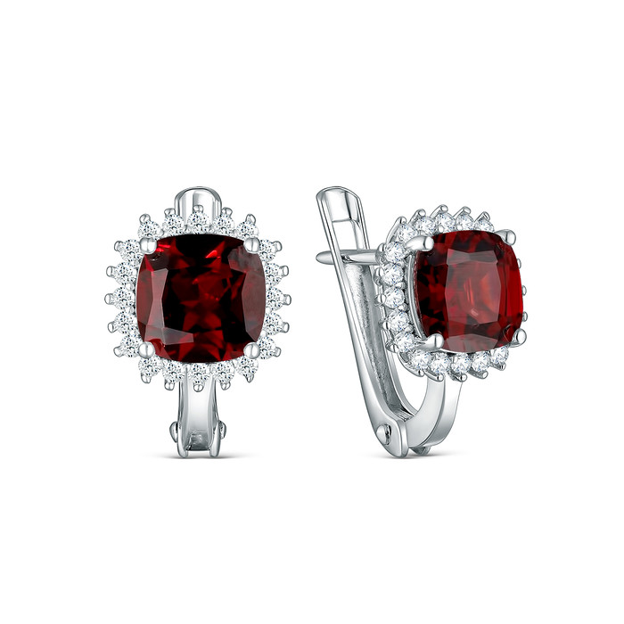 Совместные покупки Нижневартовск Ювелирные украшения и бижутерия Серьги — Серьги из серебра с гранатом и кубическим цирконием родированные 925 пробы GTE-3