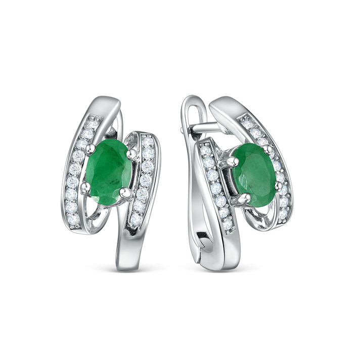 Совместные покупки Нижневартовск Ювелирные украшения и бижутерия Серьги — Серьги из серебра с изумрудом и кубическим цирконием 925 пробы GTE-12566F-E