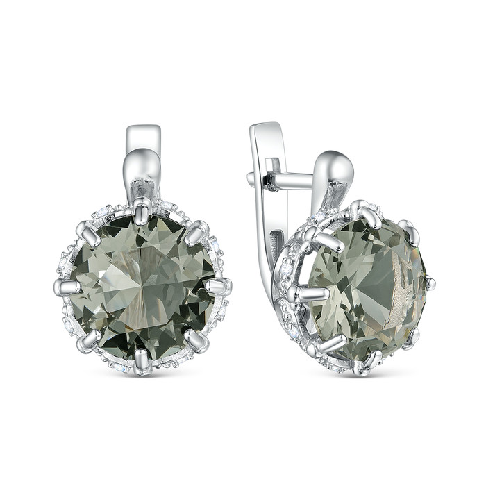 Совместные покупки Нижневартовск Ювелирные украшения и бижутерия Серьги — Серьги из серебра с плавленым кварцем цвета дымчатый и фианитами родированные 92