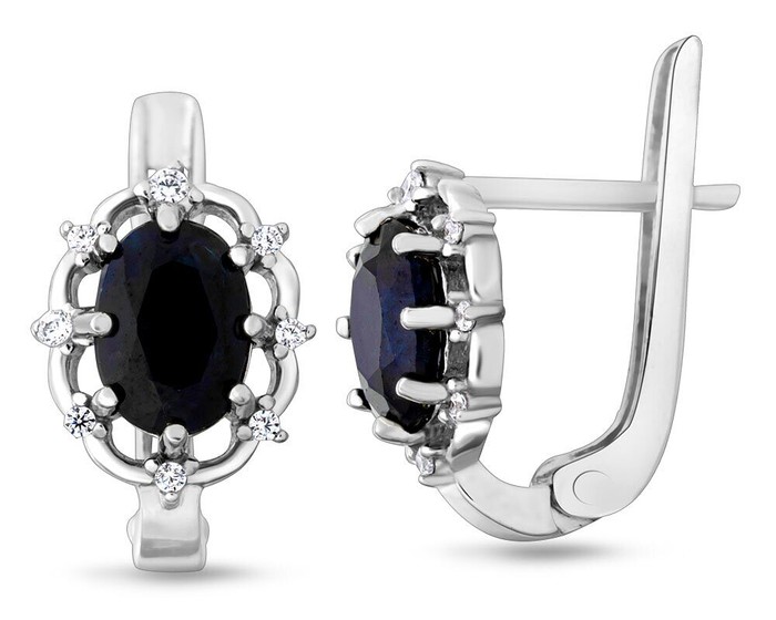 Серьги, арт.625423 Серебро Серебро 925, 2,2 гр., сапфир