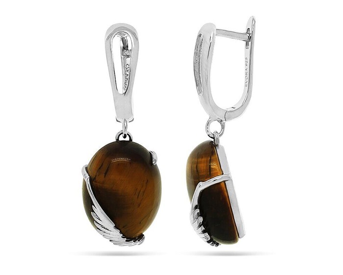 Серьги, арт.651608 Серебро Серебро 925, 6,93 гр., тигровый глаз