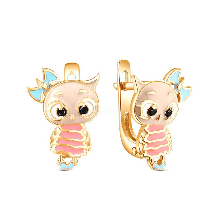 Совместные покупки Нижневартовск Детские аксессуары Украшения, бижутерия — Серьги из золочёного серебра с эмалью и фианитами - Совы 925 пробы ДС-07з
