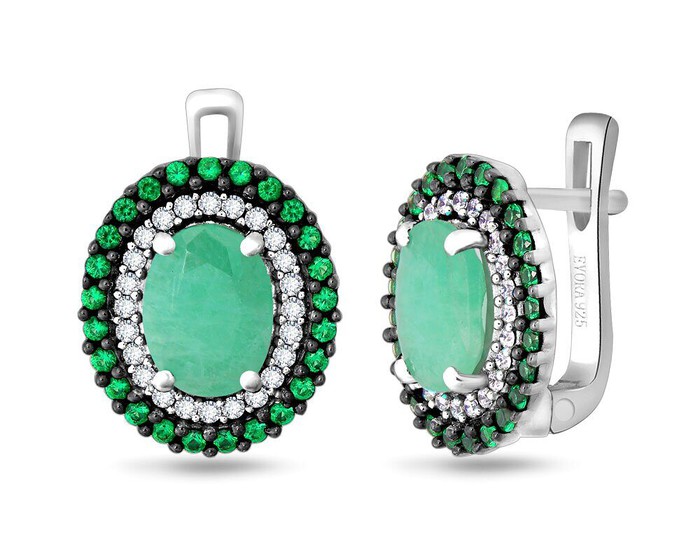 Серьги, арт.656870 Серебро Серебро 925, 5,08 гр., изумруд берилл , наноизумруд