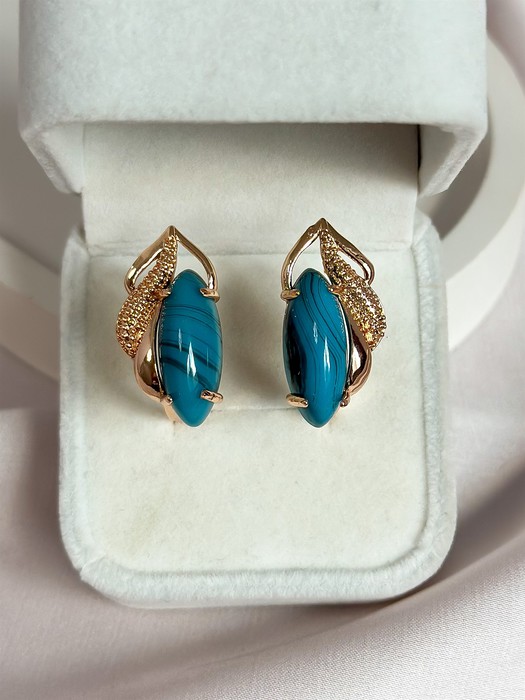 Прекрасные серьги из дубайского золота с бирюзой