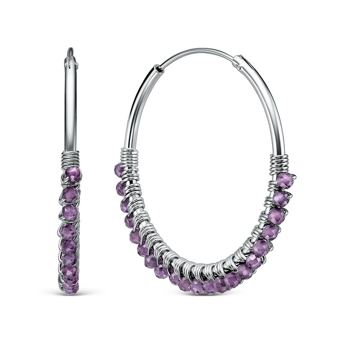 Совместные покупки Нижневартовск Ювелирные украшения и бижутерия Серьги — Серьги-конго из серебра с аметистом родированные 925 пробы 14500AMRH