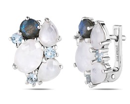 Серьги, лабрадорит , лунный камень , топаз, Джаккет