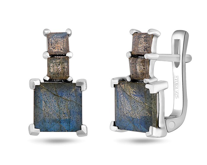 Серьги, арт.656240 Серебро Серебро 925, 3,44 гр., лабрадорит