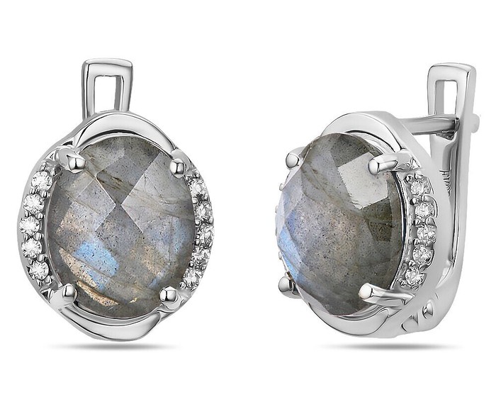 Серьги-пусеты из серебра с фианитами родированные 925 пробы 12-0870