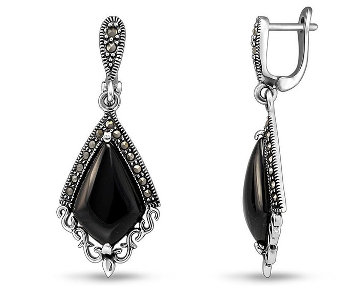 Серьги, арт.655015 Серебро Серебро 925, 9,15 гр., марказит , оникс