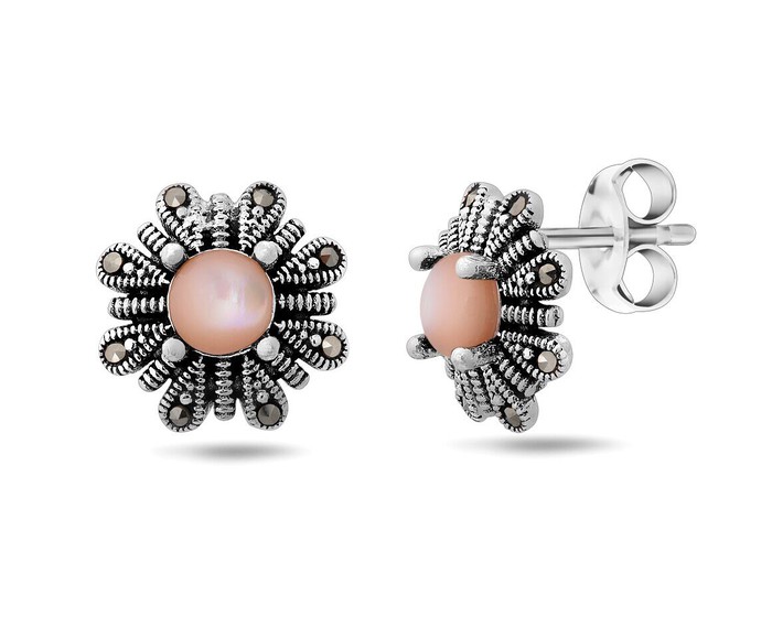 Серьги, арт.656504 Серебро Серебро 925, 2,37 гр., марказит , перламутр розовый