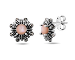 Серьги, марказит , перламутр розовый, SL-LNJ338