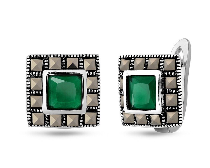 Серьги, марказит , синт.изумруд, SL-AGA1549