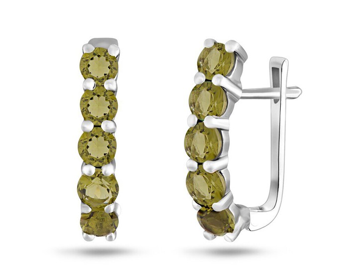 Серьги, арт.656142 Серебро Серебро 925, 4,54 гр., оливковая шпинель